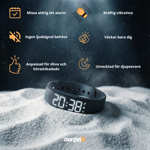 Armbandet som väcker dig med vibration direkt mot handleden så att du alltid vaknar i tid, utan ljud och utan snooze.